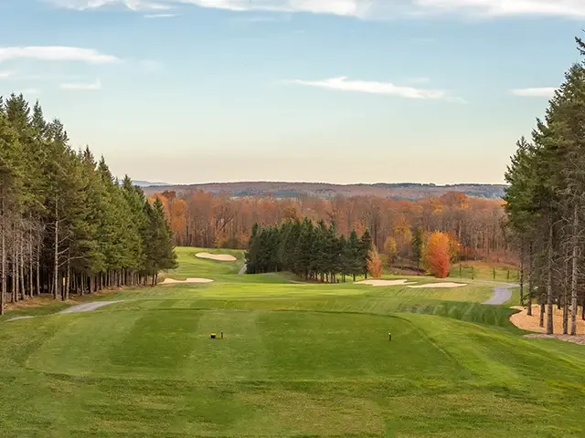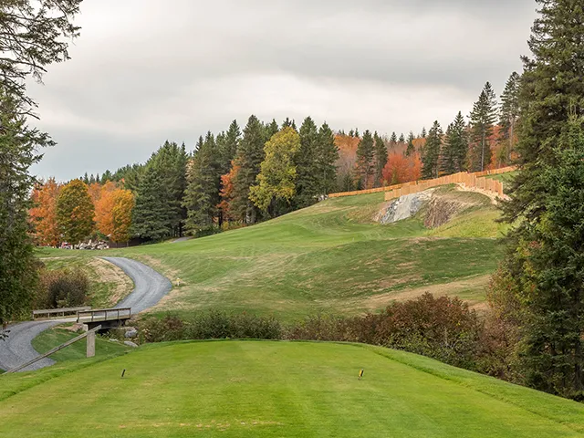 - Trou coudé vers la droite. Coup de départ suggéré : départ 1- 205 verges, départ 2- 195 verges, sinon vous risquez d’atteindre le boisé. Frappé un bon coup de départ au centre de l’allée et il vous restera 130 verges pour atteindre le vert.